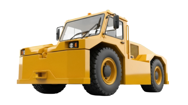Isolated airport tug or baggage towing tractor with front hitch attachment in yellow paint