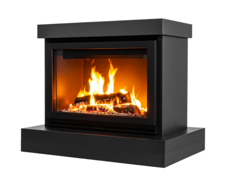 Minimalist Modern Fireplace with Stylized Flames, Side View, Isolated