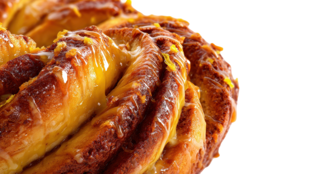 Delicious, freshly baked sweet pastry with a golden glaze. transparent background
