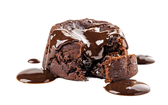 Happy woman enjoying delicious chocolate muffin on transparent background