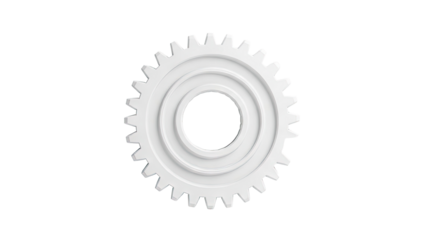 White cog illustration on transparent background displaying industrial design