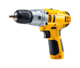Power drill in action workshop tool industrial environment view isolated on transparent background, png