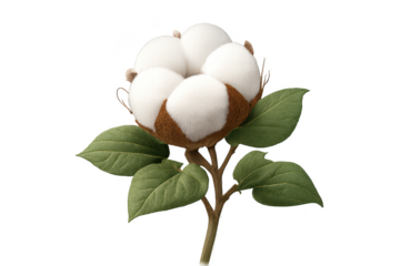 Cotton flower on transparent background. Textile industry concept.