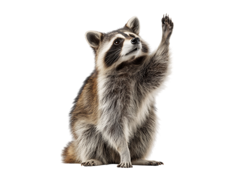 cute racoon greeting with hands up cute and adorable on transparent background