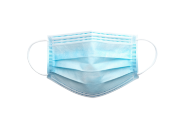 Light blue surgical mask on transparent background preventing coronavirus spreading