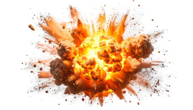 Intense explosion of fire, smoke, and debris against a black backdrop
