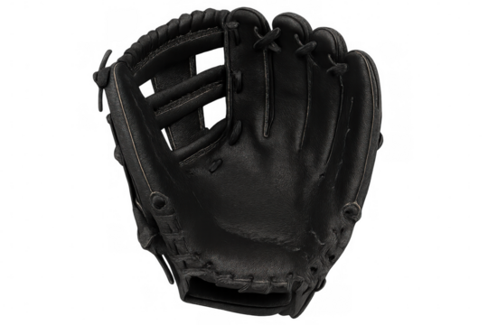 Classic black baseball glove made of sturdy leather, isolated on a transparent background, ready for adding to any sports-themed design