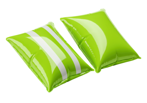 Bright green inflatable armbands for swimming safety and fun