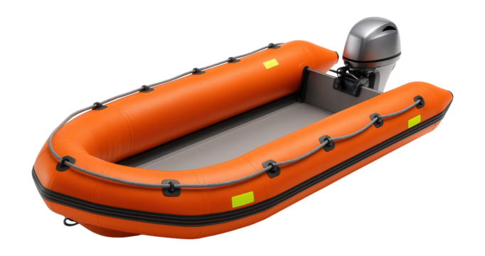 Inflatable Raft Boat Durable Orange  Gray Water Recreation Equipment for River Rafting Whitewater Adventures  Extreme Sports isolated on transparent background