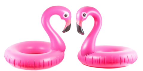 Summer fun isolated. Pink pool inflatable flamingo for summer be