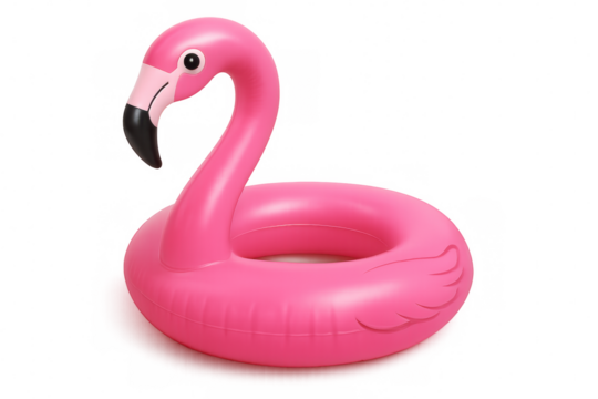 Pink inflatable flamingo ring floating on a transparent background, perfect for summer vacation and pool party themes