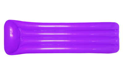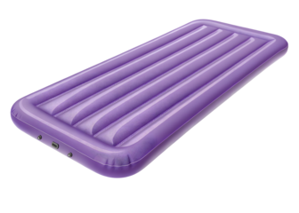 Purple inflatable floating pool raft mattress isolated on transparent background.