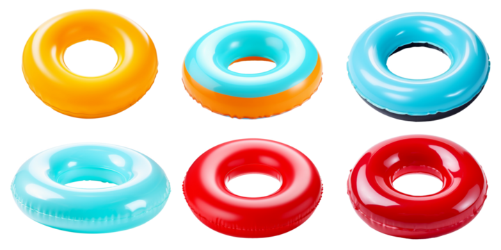 Set of Colorful swim inflatable ring or rubber ring isolated on background, summer vacation concept,  swim tube for pool.