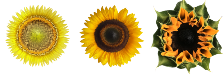 An isolated inflorescence of the Helianthus annuus, or sunflower, is presented in a png image