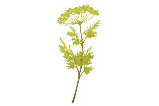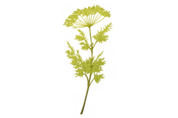 Yellow flowering herb plant with umbel inflorescence on transparent background, botanical illustration or graphic element