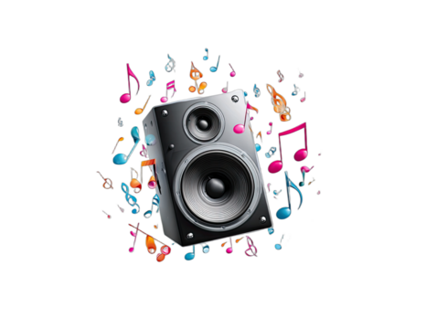 Speaker, Colorful Notes, Digital Art, Vibrant Environment, Creative Viewpoint, Sound Concept