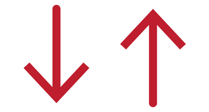 Up and down red arrow PNG transparent icon for navigation, UI, download, upload, transfer, infographic data movement, direction and design elements