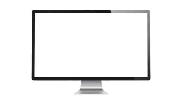 Modern computer monitor with blank white screen on a simple stand