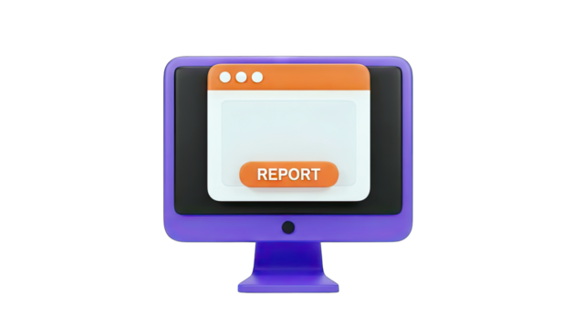 3D Computer monitor displaying code symbols on transparent background