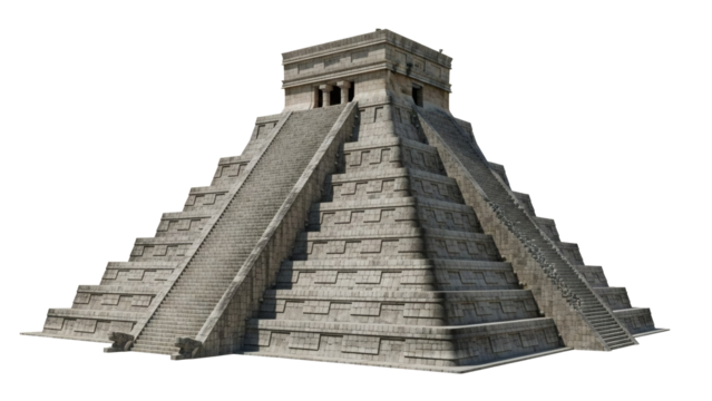 A stunning ancient Mayan temple pyramid with intricate stone steps and a towering structure, evoking a sense of history and mystery.