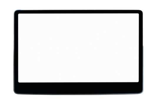 Dashboard display with brushed metal frame and dedicated infotainment controls