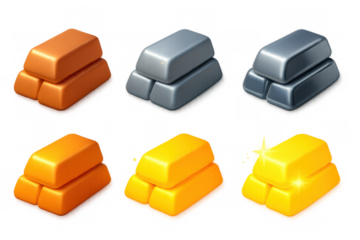 Gold ingot set on a transparent background