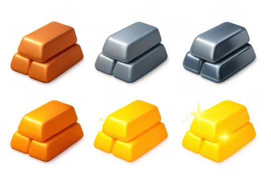 Pyramid stack of ten gleaming gold bars on a background bullion ingot isolated on a transparent background