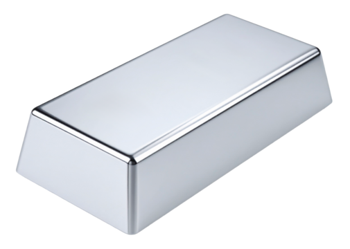 silver ingot bar, precious metal, physical stable investment PNG transparent background, isolated graphic resource cutout