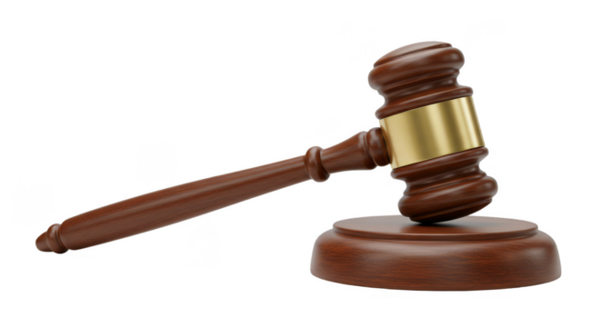 Isolated 3D Rendering of Wooden Gavel for Court Justice and Law
