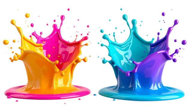 Colorful paint splash isolated on a PNG transparent background. Vibrant, dynamic paint splatter with various colors, perfect for design projects, digital art, and creative applications