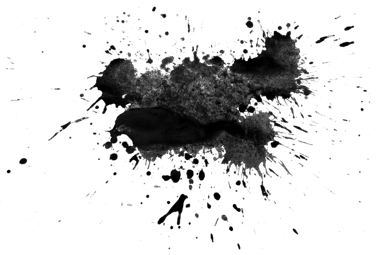 Abstract dripping ink splatter textures on white background. Grunge drips and distressed splashes create artistic messy paint effect. Perfect for overlays, design accents, and graphic art.