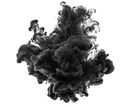 Dark ink swirling in a dramatic cloud against a black background.  A complex, textured,  and  abstract  display of  ink  motion