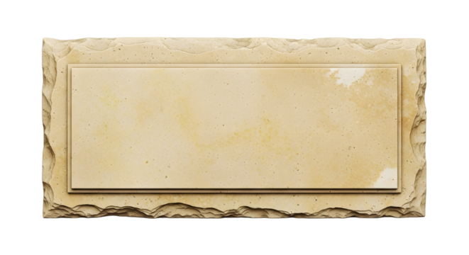 A rectangular stone plaque with a slightly raised inner panel, isolated on transparent background