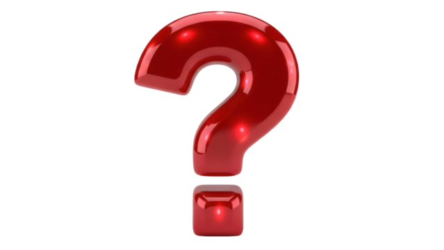 Shiny red question mark isolated PNG on transparent background, symbol of uncertainty and inquiry for graphic design