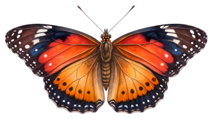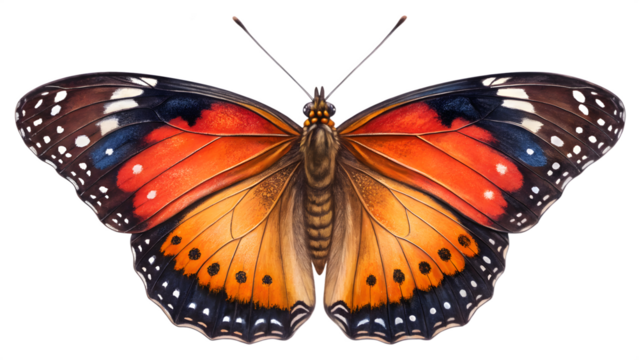 Blue orange butterfly with spread wings cut out on transparent background , png transparent