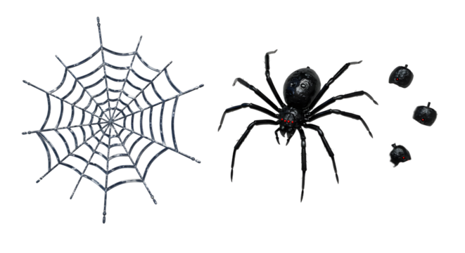 Black spider on web design illustration on transparent background
