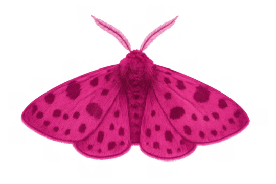 Pink spotted rosy maple moth, fluffy insect with vibrant wings, flat vector style illustration on transparent background