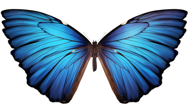 A close up shot of a vibrant blue butterfly with intricate wing patterns against a transparent background png