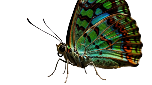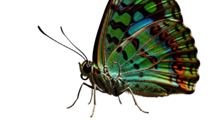 Exotic Butterfly with Green and Blue Wings Isolated on Transparent Background