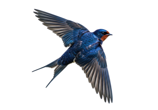 Isolated Bird of a Barn Swallow in Flight Shows its Colorful Plumage With Wings Spread