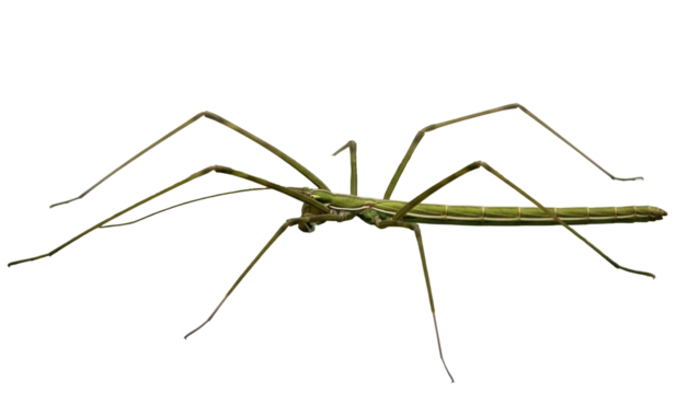 Isolated Green Stick Insect or Walking Stick against Clean Backdrop, Insectivore Fauna