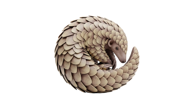 3D Pangolin curled up in defensive ball transparent background