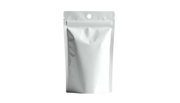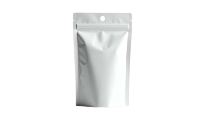 Isolated white stand-up pouch mockup on a transparent background