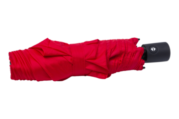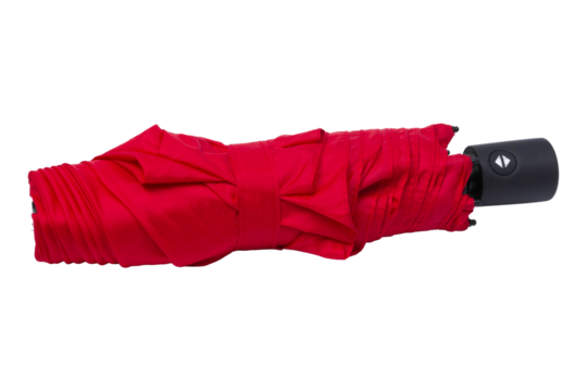 Isolated green inverted umbrella, closed, handle curved and golden, rain gear for protection