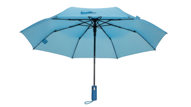 Isolated sky-blue umbrella with automatic open close feature, protection from rain and sun rays