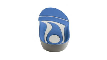 Pair of blue textured orthopedic shoe insoles for foot comfort isolated on a transparent background