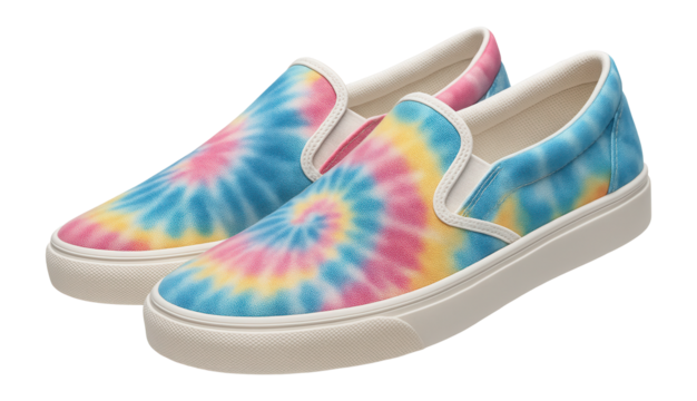 Tie-dye pattern slip-ons with a cushioned insole and rubber outsole