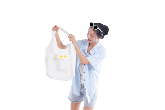 Summer's Embrace: A stylish individual, shielded by sunglasses, inspects a light bag, embodies the essence of warm, bright days, suggesting simplicity and joy.