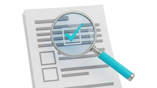 Magnifying glass over documents with checklist