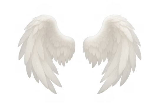 Pair of white angel wings floating, symbolizing heaven, freedom, purity, spirituality, and divine protection